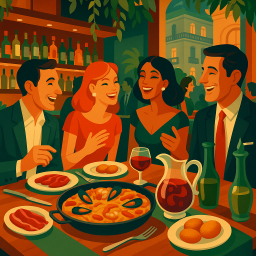 * Peter can now enjoy the dinner with his friends at Restaurante Ten Con Ten Madrid!