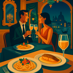 * Peter can now enjoy the dinner with his friends at Ristorante Glam Venezia!