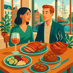 * Peter can now enjoy the dinner with his friends at Scheepskameel Amsterdam!