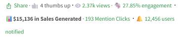 As you can see above, the post enjoyed an engagement of almost 30% and generated $15k in sales.