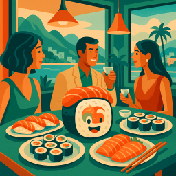 * Peter can now enjoy the dinner with his friends at Sushi Leblon!