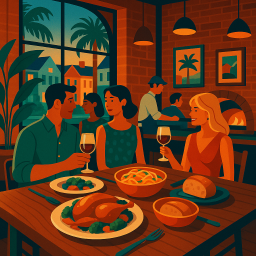 * Peter can now enjoy the dinner with his friends at Vern's Charleston!
