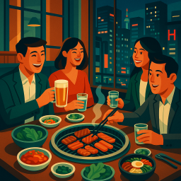 Let's say Peter has a great morning and decides to take his three friends to Yeongcheon Yeonghwa Barbeque Restaurant Gangnam-gu at 6 PM the same day.